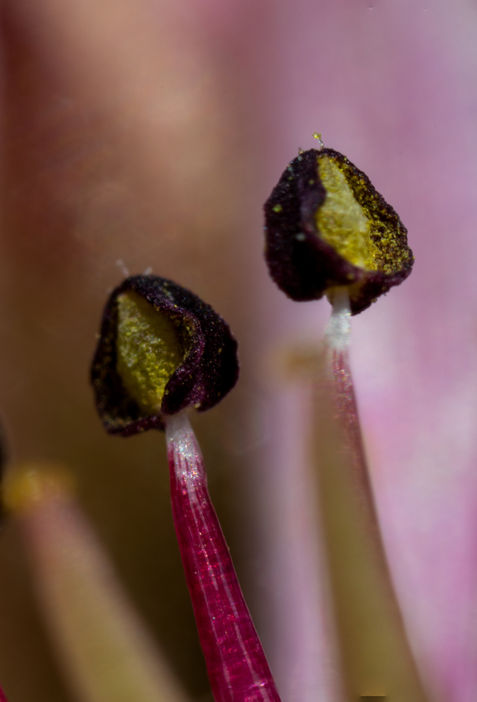 5. Ett drama i den lilla världen. Bilden är tagen precis i det ögonblicket när krabbspindeln sträcker ut sina ben som två tentakler mot sitt offer. En sammanhållen fin färgskala där nattviolens sporrar håller ihop kompositionen.